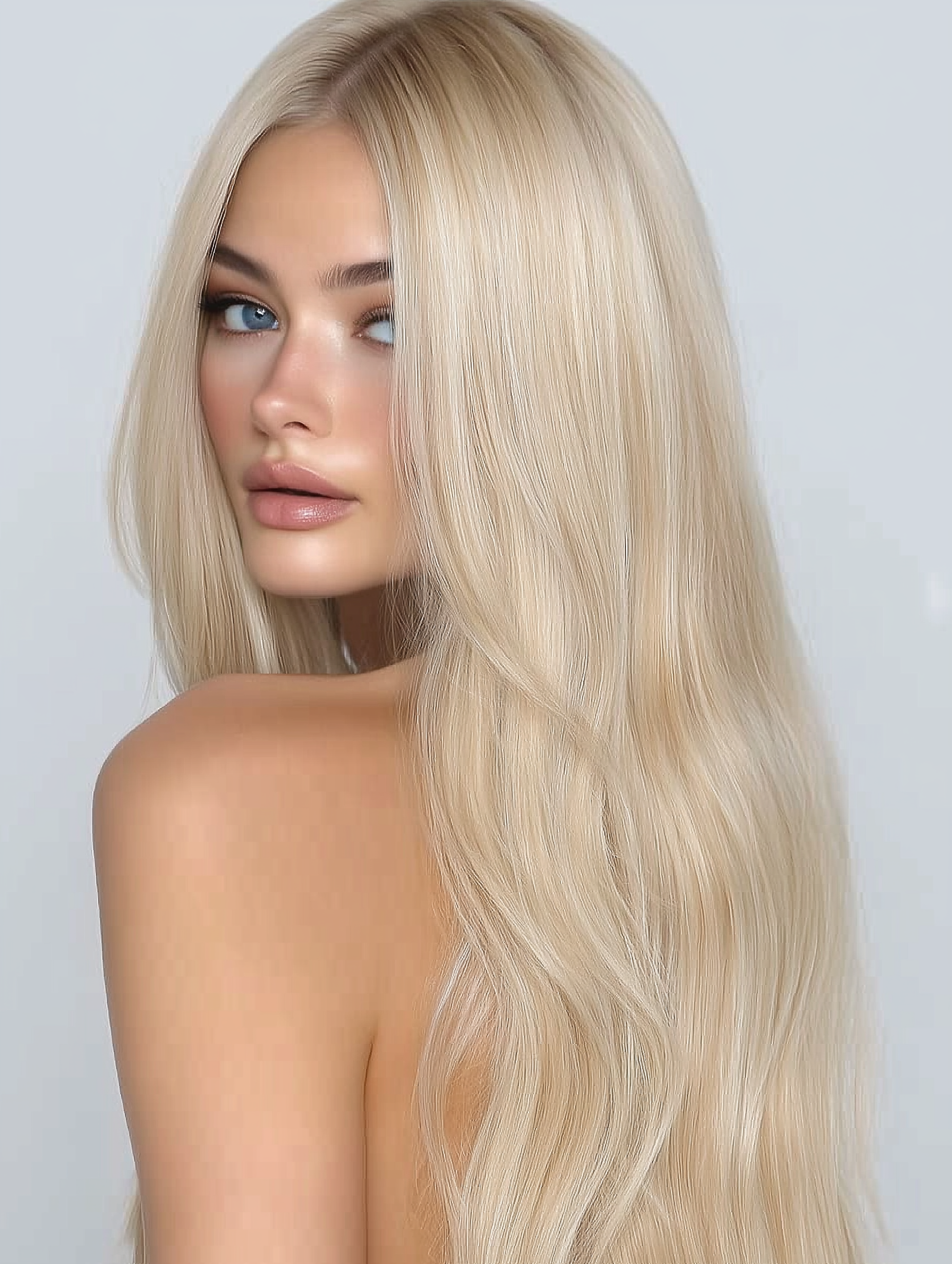 - Koel, helder blond – salon fris effect met natuurlijke diepte door de zachte wortel.