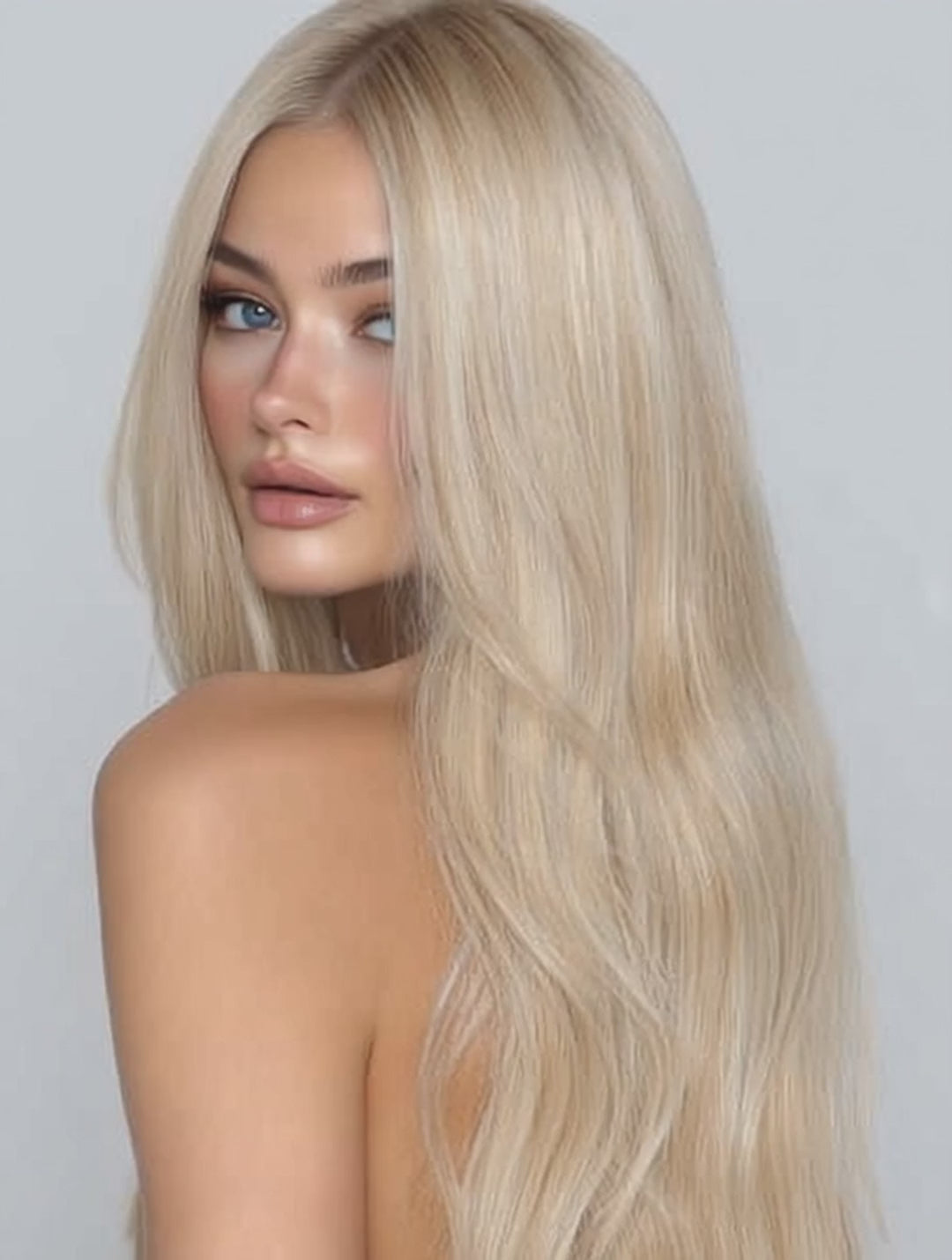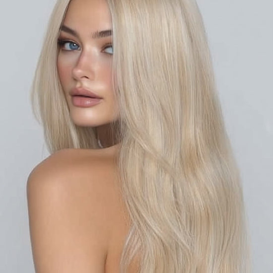 Platinum Tease is een ultralicht platinablond met een koel-neutrale ondertoon. De tint verspreid ijzig/platinablond met parel-as nuances en een vleug koele champagneglans . Aan de aanzet zit een onderliggende beige/zand blonde shadow root voor een karakteristieke, niet-streperige blend. Fris, helder en zonder gele of koperige zweem .